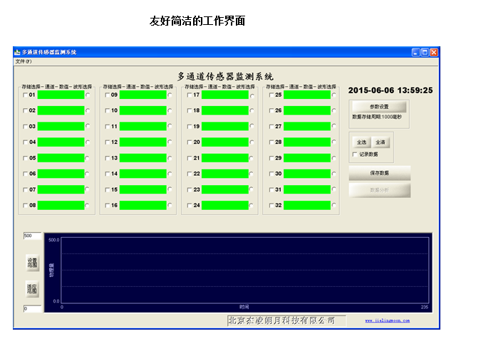 多通道信号采集系统由一个多通道信号采集模块、多套传感器和软件系统组成。采集模块完成传感器信号的采样、调理、计算机信号转换等工作;传感器完成对物理量的电信号转换,软件系统则通过友好的软件操作界面完成数据的采集、记录。供技术人员进行数据分析,其中多通道信号采集模块分为静态与动态信号采集两种。